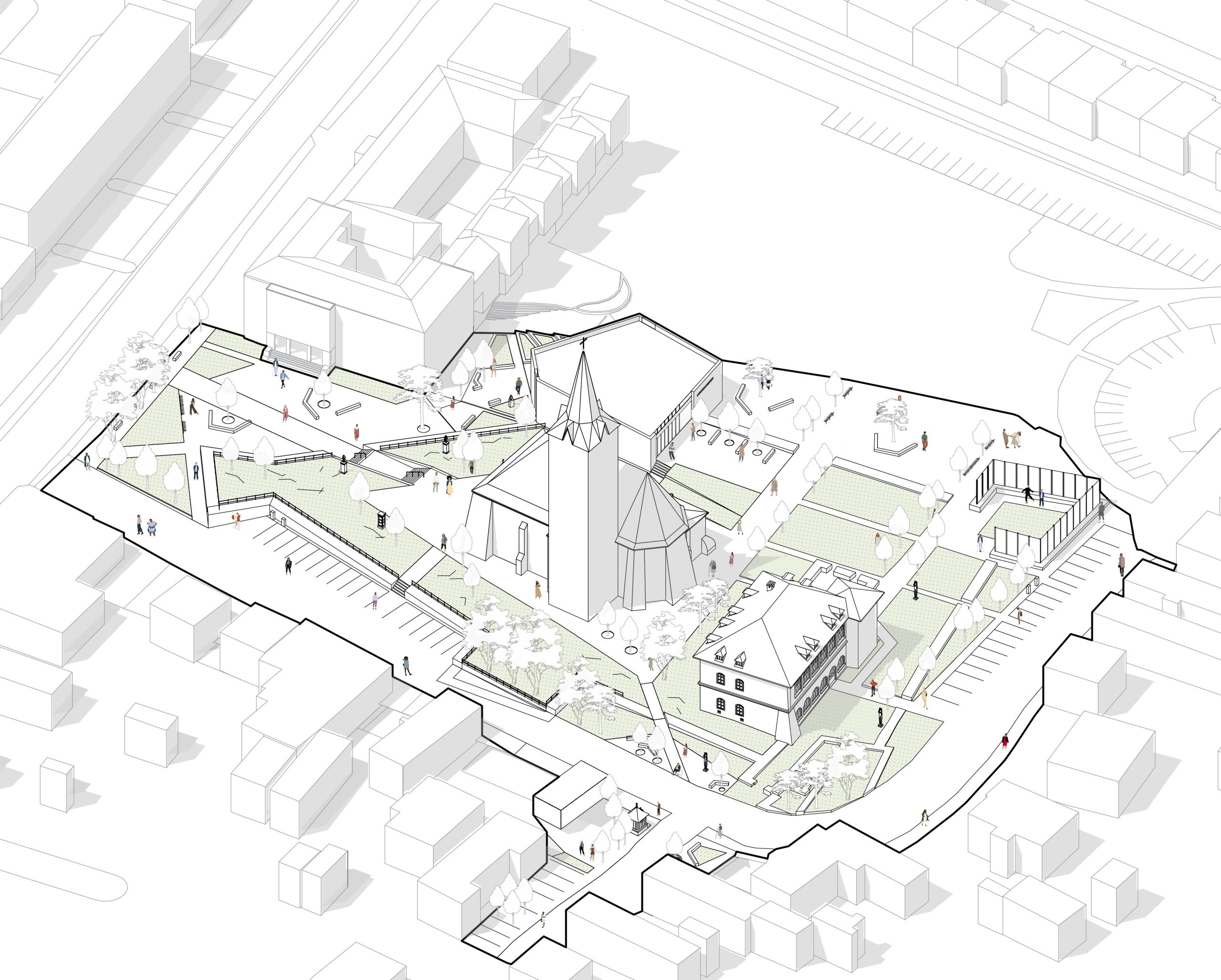 Základom konceptu je zobrazenie histórie mesta v jej najkrajšej podobe - náznakom aj zážitkom. Zachované hradby sú prezentované v exteriéri formou odhalenia, no s možnosťou sadnúť si na ne a tráviť čas v obklopení zeleňou. Pre spoznanie histórie mesta slúži novo navrhované lapidarium, kde bude mať návštevník možnosť prejsť si genézou vývoja, vzniku a urbanizmu mesta. Lapidarium ponúkne hmotné artefakty, ako aj interaktívnu prehliadku. Zavŕšením programu je možnosť zažiť krásny pohľad na mesto z veže Sanktuaria. Návrh počíta s vytvorením množstva posedovych zelených plôch a malých námestí. Keďže sa predpokladá, že hradby boli obkolesené vodnou priekopou, aj návrh počíta s umiestnením fontán okolo hradieb.