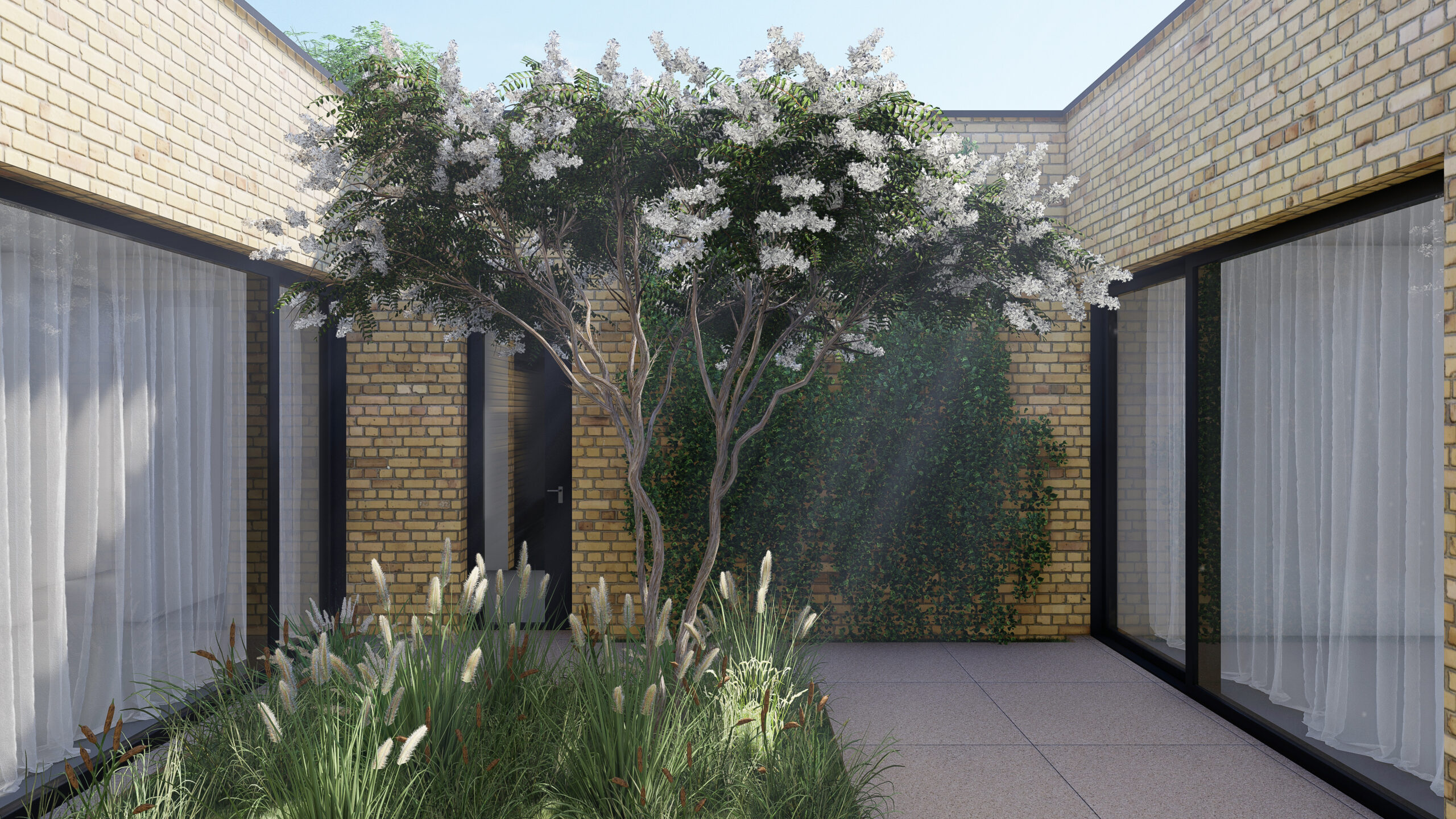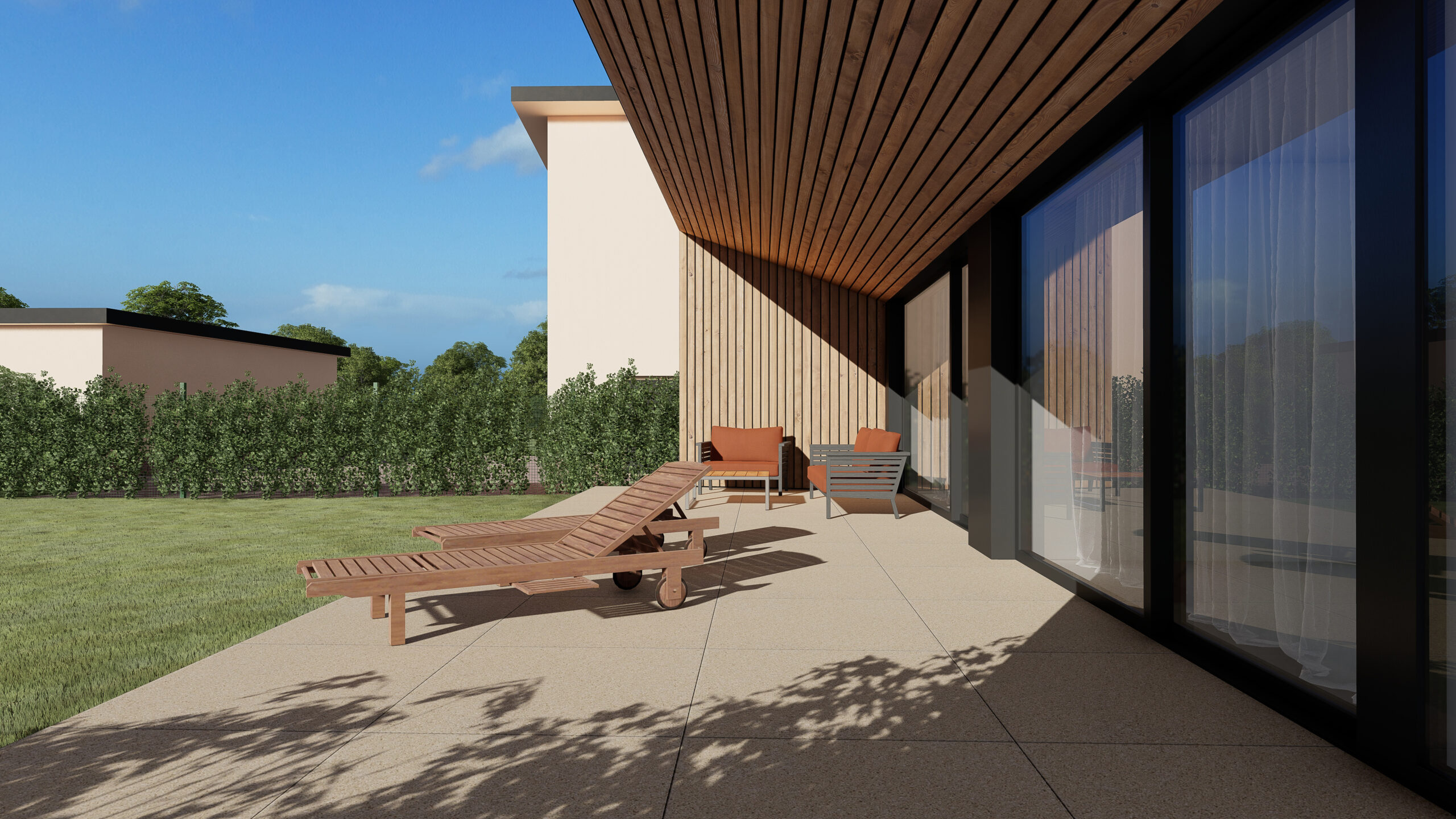 Želaním klienta bolo vytvoriť dom s oddychovou časťou prepojenou s exteriérom neviditeľným z ulice. To sa nám v návrhu podarilo docieliť. Vznikol tak koncept domu s vnútorným átriom.