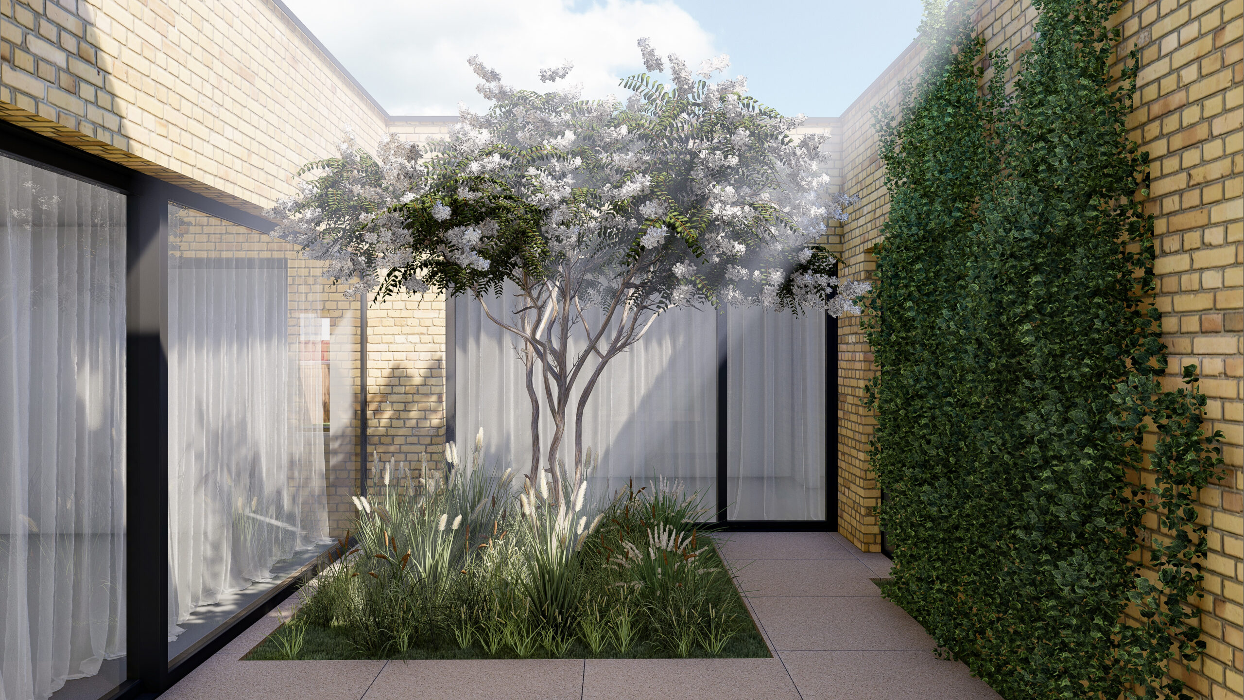V rodinnom dome ja navrhovaných viacero funkcií. Okrem obývacej izby s kuchyňou koncept prináša aj wellness časť s priamym prístupom do vnútorného átria. V átriu je navrhovaná nízka a vyššia zeleň s exteriérovou dlažbou a posedom. Je prístupné z obývacej izby a spálne. Dom v sebe ukrýva taktiež pracovňu, garáž a priestrannú chodbu.